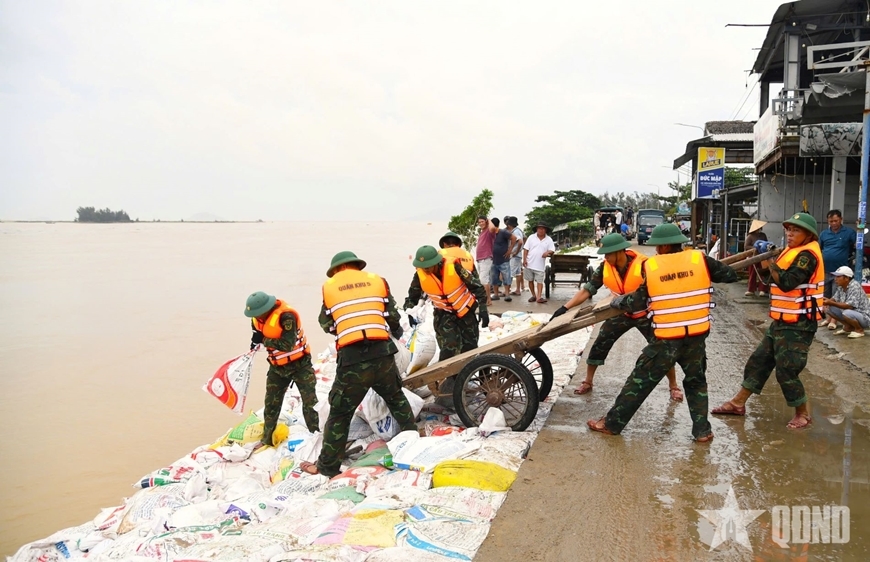 | Các lực lượng thực hiện nhiệm vụ tại tuyến kè An Lương, xã Duy Nghĩa, TP Đà Nẵng. Ảnh: qdnd.vn |