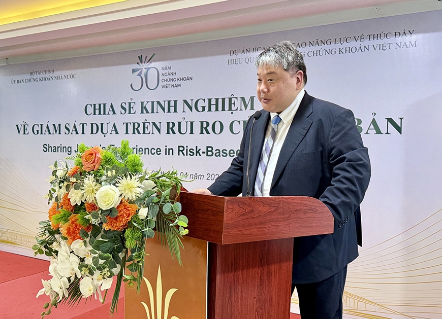 | Ông Norichika Ikeda, chuyên gia dài hạn của Dự án JICA/ Cơ quan Dịch vụ Tài chính Nhật Bản chia sẻ kinh nghiệm. |