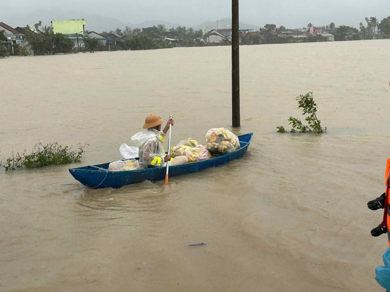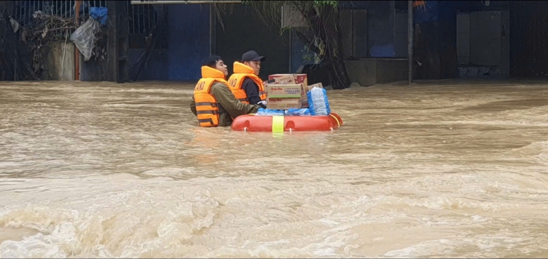 | Tiếp tế nhu yếu phẩm thiết yếu cho người dân bị cô lập bởi nước lũ. |