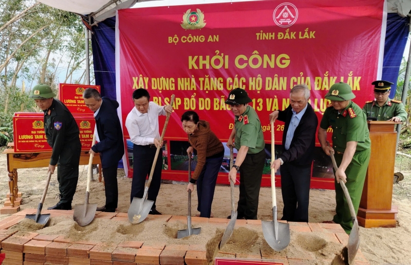 Bộ Công an chủ trì lễ khởi công xây dựng các căn nhà cho người dân tỉnh Đắk Lắk có nhà ở đã bị bão lụt gây sập đổ, hư hỏng.