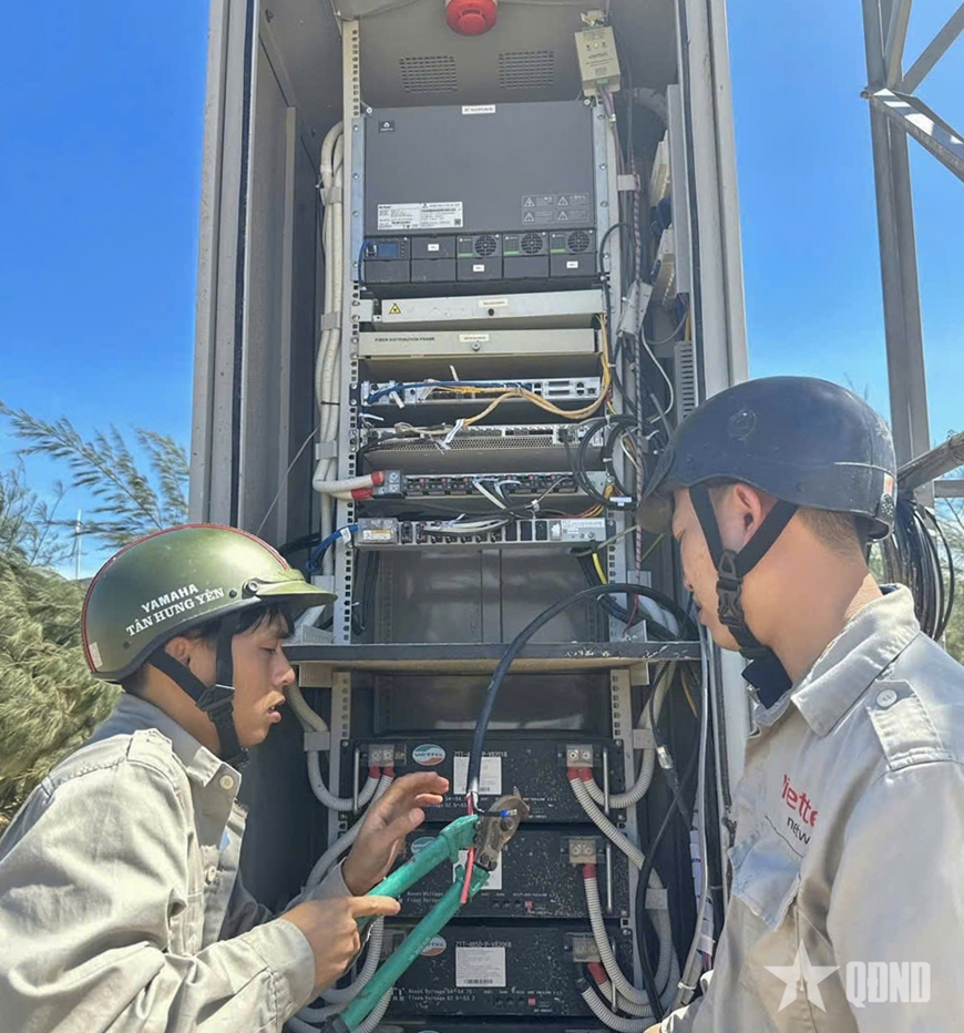 | Nhân viên kỹ thuật Viettel Gia Lai xử lý sự cố, khôi phục sóng di động và mạng cố định băng rộng cho khách hàng. |