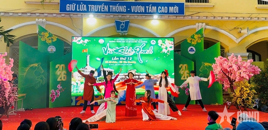 Cô trò Trường THCS Nguyễn Tri Phương trình diễn văn nghệ tại Vũ khúc Xanh 12.