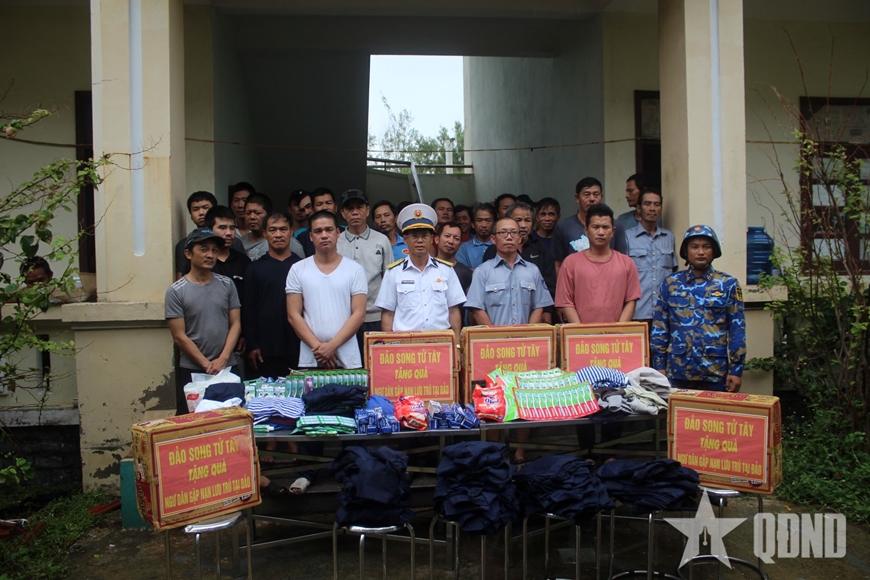 Cán bộ, chiến sĩ đảo Song Tử Tây đã tiến hành chuẩn bị sắp xếp vị trí nơi ăn, ngủ, nghỉ cho ngư dân, tiến hành khám bệnh, cấp phát thuốc, tặng các ngư dân gặp nạn 5 thùng phở, 80 bộ quần áo, 52 tuýp kem đánh răng, 52 bàn chải đánh răng, 20 gói bột giặt, 30 bánh xà bông tắm, 60 gói dầu gội đầu, 52 bàn cạo râu .