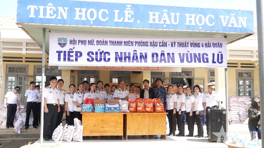 Ngày 6-12, đoàn công tác Phòng Hậu cần - Kỹ thuật, Vùng 4 Hải quân gồm 40 cán bộ, chiến sĩ triển khai các hoạt động hỗ trợ nhân dân tại xã Hòa Xuân, tỉnh Đắk Lắk khắc phục hậu quả lũ lụt.