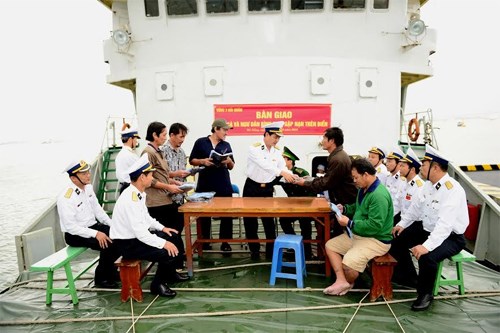 Ngay trong sáng 2-12, đại diện Bộ Tư lệnh Vùng 3 Hải quân đã làm thủ tục bàn giao tàu BĐ 96344 TS và 7 ngư dân cho chính quyền huyện Hoài Nhơn (Bình Định). Toàn bộ 7 thuyền viên tàu cá bị nạn đã trở về đoàn tụ cùng gia đình. Trên tay họ còn có những món quà do Đại tá Phạm Văn Hiệp, Phó Tư lệnh Vùng 3 Hải quân trao tặng... Món quà tuy nhỏ nhưng chan chứa tình người bởi đó là tấm lòng thơm thảo của cán bộ, chiến sĩ Vùng 3 Hải quân. Họ không chỉ bất chấp gian khổ, vượt sóng dữ cứu ngư dân thoát khỏi cơn nguy khốn, mà còn lo lắng cho người bị nạn như chính người thân của mình...