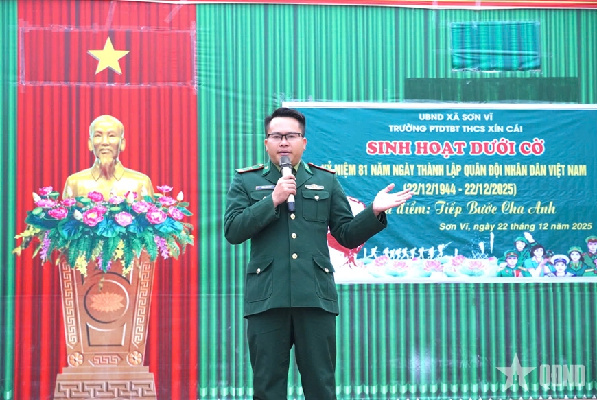 Sáng cùng ngày, Trường Phổ thông dân tộc bán trú Trung học cơ sở Xín Cái phối hợp với Đồn Biên phòng Xín Cái tổ chức Sinh hoạt dưới cờ Đảng với chủ điểm “Tiếp bước cha anh”. Chương trình gồm nhiều nội dung ý nghĩa như: Ôn lại truyền thống Ngày 22-12; hoạt động tri ân “Tiếp bước cha anh”; giao lưu giữa cán bộ, chiến sĩ Biên phòng với học sinh; các hoạt động trải nghiệm, giáo dục kỹ năng sống.