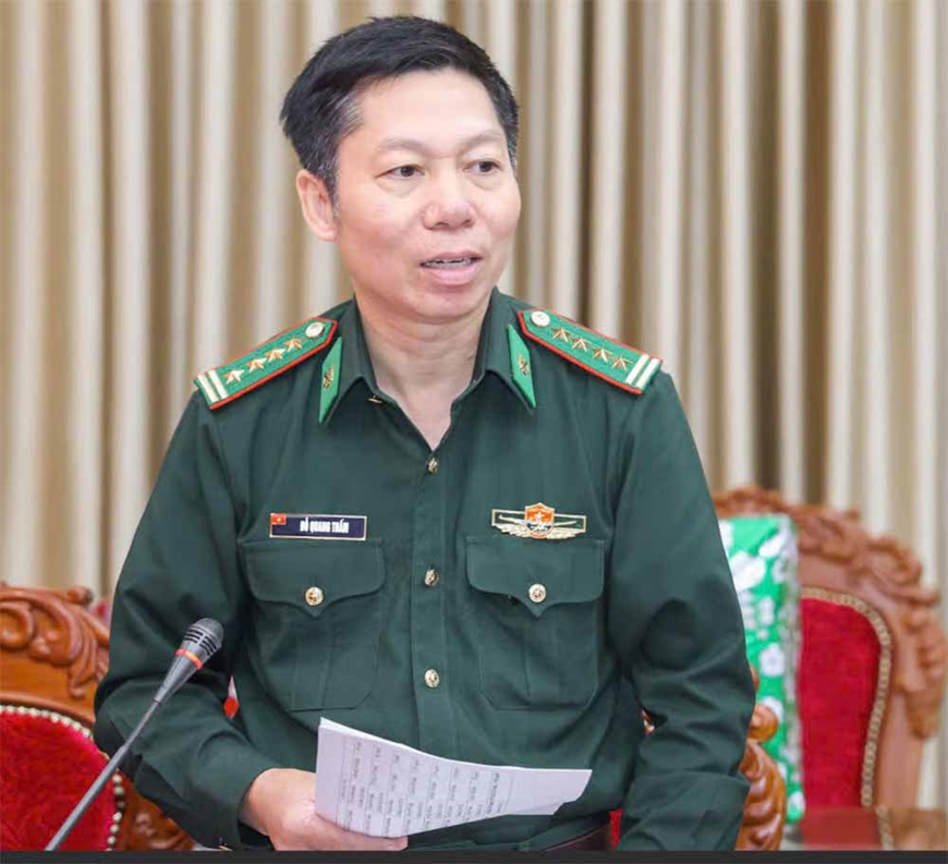 | Đại tá Đỗ Quang Thấm, Phó chính ủy Bộ CHQS tỉnh Đắk Lắk kiêm Chính ủy Ban chỉ huy Bộ đội Biên phòng tỉnh Đắk Lắk phát biểu tại buổi làm việc. Ảnh: daidoanket.vn |