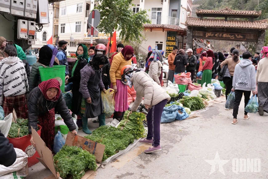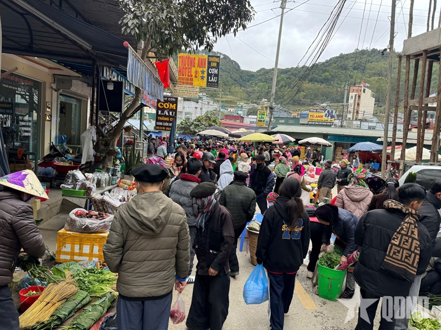 Những ngày giáp Tết Nguyên đán, khi sương sớm còn phủ mờ các triền núi đá, chợ phiên Đồng Văn (xã Đồng Văn, tỉnh Tuyên Quang) đã rộn ràng người đến mua bán, trao đổi hàng hóa và cả thưởng lãm một phiên chợ vùng cao đối với du khách thập phương.