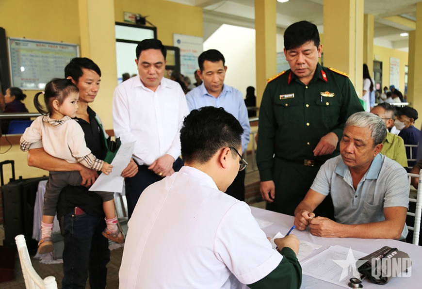 Đồng chí Phó giám đốc Bệnh viện Quân y 109 nắm tình hình công tác khám bệnh cho bà con xã Chân Mộng.