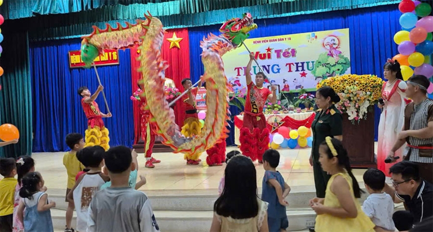Tối 3-10, Bệnh viện Quân dân y 16 (Binh đoàn 16) đã tổ chức đón Tết Trung thu sớm cho các cháu là con cán bộ, nhân viên trong đơn vị và các bệnh nhân nhi đang điều trị tại Bệnh viện.