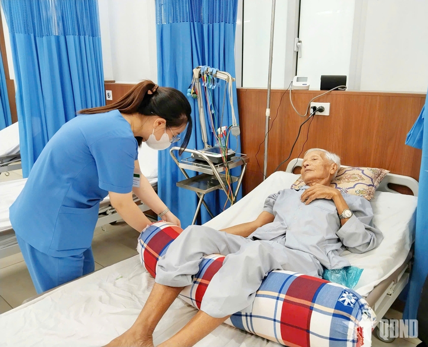 | Gác lại niềm vui sum họp, cán bộ, y bác sĩ, nhân viên điều dưỡng Bệnh viện Quân y 121 tận tâm chăm sóc sức khỏe người bệnh. |