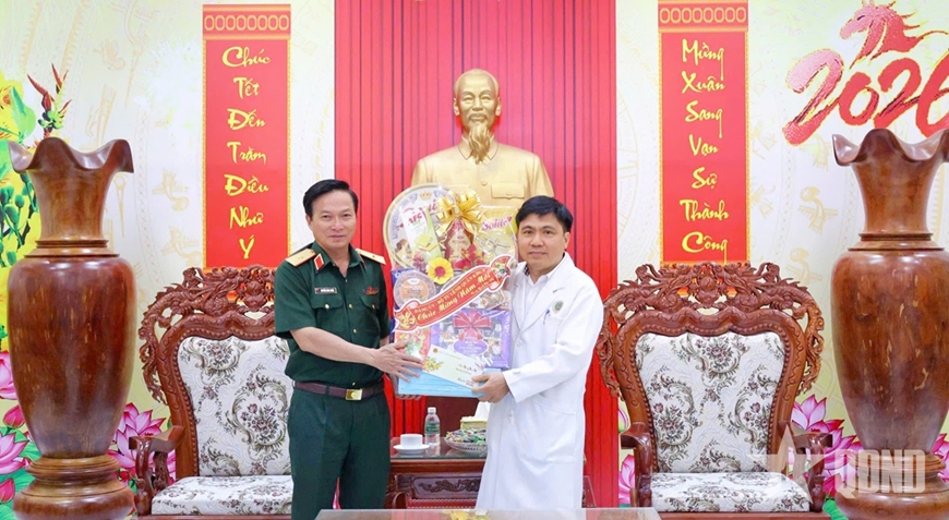 | Lãnh đạo Quân khu 9 thăm, chúc mừng Bệnh viện Quân y 121. |
