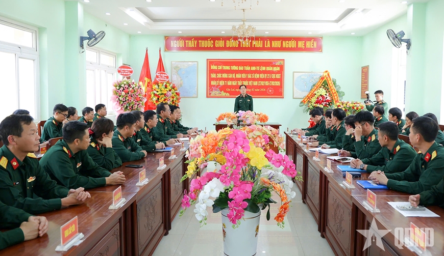 Trung tướng Đào Tuấn Anh, Ủy viên Trung ương Đảng, Tư lệnh Quân đoàn 34 nói chuyện với tập thể cán bộ, y, bác sĩ Bệnh viện Quân y 211.