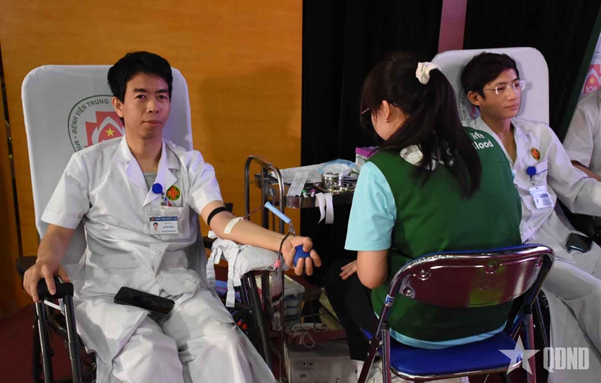 Ngày hội hiến máu nhận được sự hưởng ứng của đông đảo cán bộ, y bác sĩ Bệnh viện Quân y 354. |
