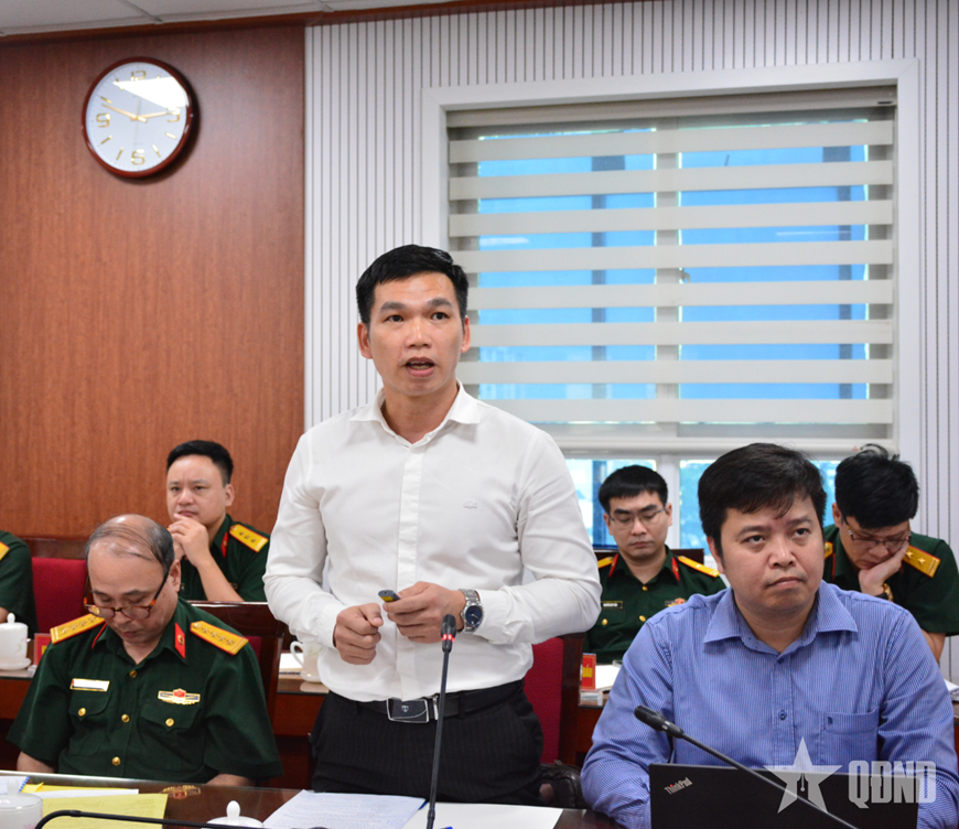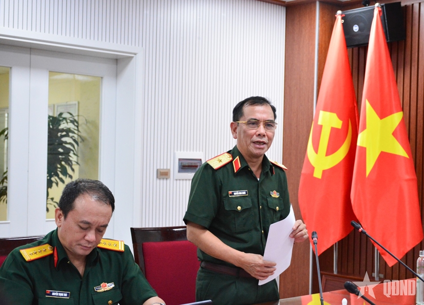 Thiếu tướng Nguyễn Đình Chiêu, Phó chính ủy Tổng cục Hậu cần-Kỹ thuật phát biểu chỉ đạo hội thảo.