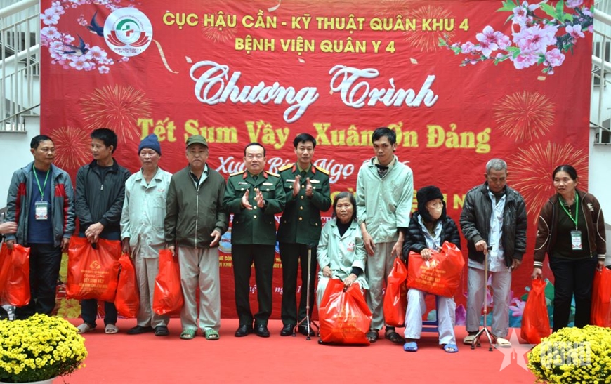 Tại chương trình, hơn 200 bệnh nhân nghèo và người nhà bệnh nhân có hoàn cảnh khó khăn đang ở lại điều trị và chăm sóc người bệnh tại bệnh viện được thủ trưởng Bộ tư lệnh Quân khu 4, Ban giám đốc Bệnh viện, các nhóm thiện nguyện thăm hỏi, tặng quà.