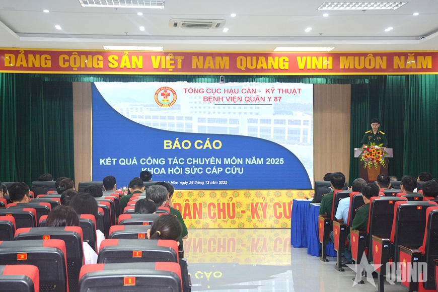 Năm 2025, Bệnh viện Quân y 87 đã khắc phục nhiều khó khăn, hoàn thành toàn diện nhiệm vụ khám, thu dung, cấp cứu, điều trị và công tác chỉ đạo tuyến. Tổng số lượt khám bệnh đạt hơn 130.600 lượt, tăng hơn 15% so với năm 2024; số bệnh nhân thu dung điều trị đạt 16.740 lượt, tăng gần 24%. Công tác cấp cứu được triển khai kịp thời, hiệu quả, với hơn 15.800 ca, tăng hơn 53%; tỷ lệ khỏi bệnh ra viện đạt hơn 76%, tỷ lệ chuyển viện và tử vong duy trì ở mức thấp, bảo đảm an toàn người bệnh.