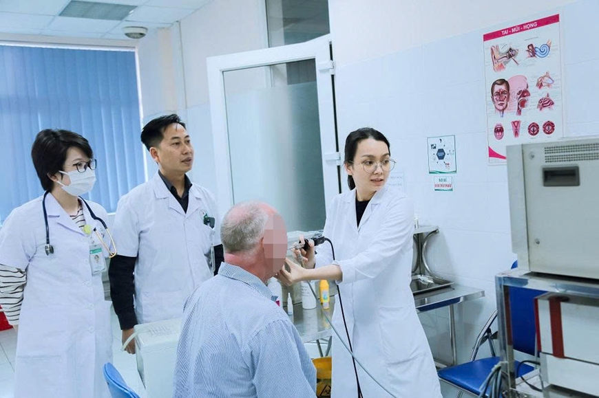 Bệnh nhân người nước ngoài đầu tiên được các bác sĩ Bệnh viện đa khoa Đức Giang nội soi vi phẫu thanh quản cắt u hạt bằng laser CO2. Ảnh: Bệnh viện cung cấp