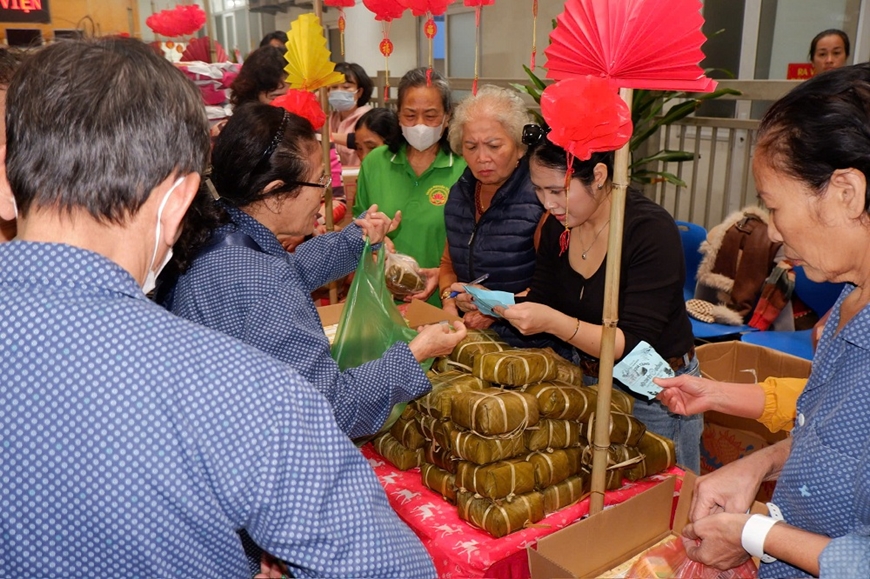 Tại đây, thay vì sử dụng tiền mặt, người tham gia được Ban tổ chức phát các “phiếu mua hàng” để lựa chọn những món quà Tết, những mặt hàng thiết yếu từ sữa, bánh chưng, mì tôm, quần áo, tất, mũ, giầy, sách… tại các gian hàng. Những món quà tuy không lớn về vật chất, nhưng chứa đựng tình cảm, sự sẻ chia ấm áp, giúp người bệnh yên tâm điều trị và thêm hy vọng đón một mùa xuân mới an lành.