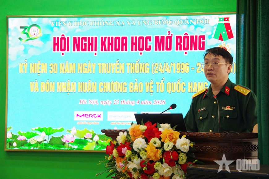 Chiều 23-4, Viện Y học phóng xạ và Ung bướu Quân đội, Cục Quân y, Tổng cục Hậu cần – Kỹ thuật Tổ chức Hội nghị Khoa học mở rộng với chủ đề “Cập nhật các phương pháp chẩn đoán và điều trị trong Y học hạt nhân và Ung thư” nhân kỷ niệm 30 năm ngày truyền thống của Viện (24-4-1996/24-4-2026) và đón nhận Huân chương bảo vệ Tổ quốc hạng Nhì.