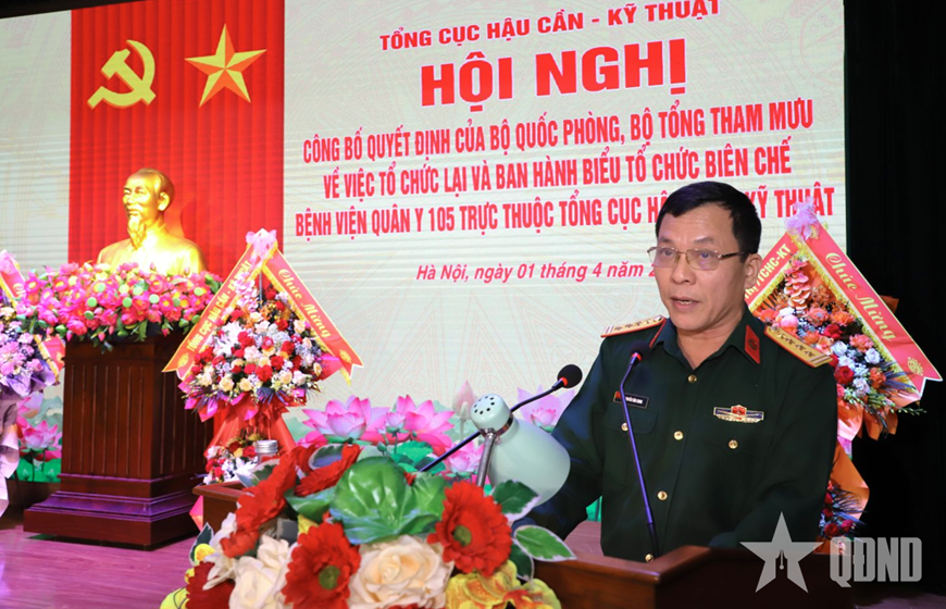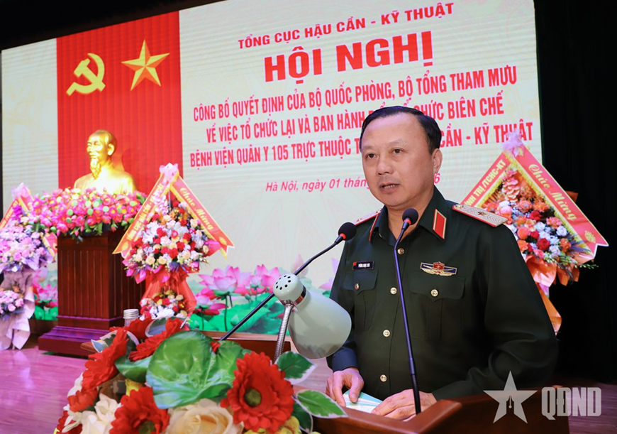 Tại hội nghị, các cơ quan chức năng của Tổng cục Hậu cần-Kỹ thuật đã công bố các quyết định của Bộ Quốc phòng, Bộ Tổng Tham mưu, Tổng cục Hậu cần-Kỹ thuật, bao gồm: Quyết định của Bộ Quốc phòng về việc tổ chức lại Bệnh viện Quân y 105 trực thuộc Tổng cục Hậu cần-Kỹ thuật; Quyết định của Bộ Tổng Tham mưu ban hành biểu tổ chức, biên chế Bệnh viện Quân y 105 (thời bình) trực thuộc Tổng cục Hậu cần-Kỹ thuật; Quyết định của Tổng cục Hậu cần-Kỹ thuật về việc điều động, bổ nhiệm đối với cán bộ; Quyết định của Đảng ủy Tổng cục Hậu cần-Kỹ thuật về việc kiện toàn Đảng ủy Bệnh viện Quân y 105 nhiệm kỳ 2025-2030; Quyết định của Đảng ủy Tổng cục Hậu cần-Kỹ thuật về việc chuẩn y Ủy ban Kiểm tra và các chức danh trong Ủy ban Kiểm tra Đảng ủy Bệnh viện Quân y 105 nhiệm kỳ 2025-2030.