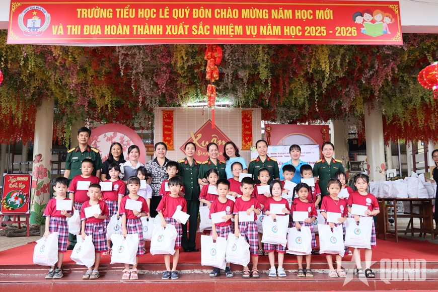 | Hội Phụ nữ Bệnh viện Quân y 4 phối hợp cùng Hội Liên hiệp Phụ nữ phường Dĩ An (TP Hồ Chí Minh) trao hơn 80 phần quà Tết tặng các em học sinh có hoàn cảnh khó khăn. |