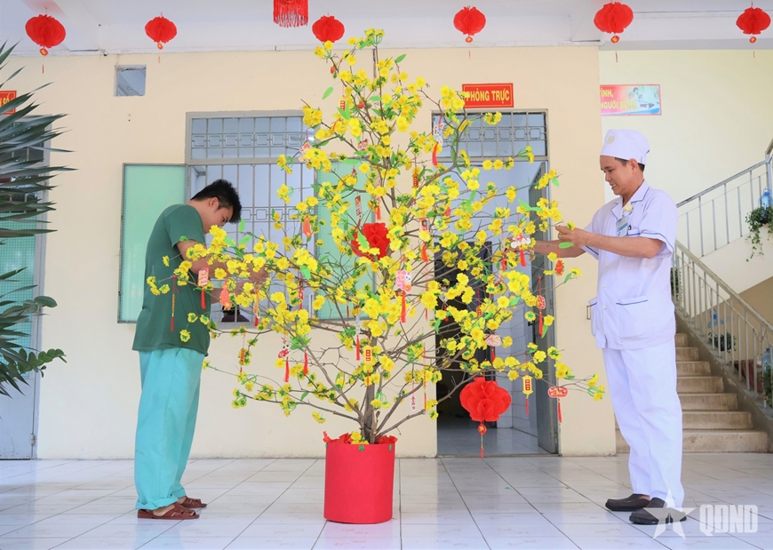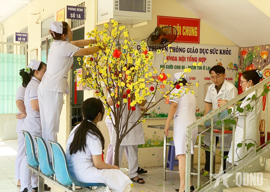 Những lời chúc xuân, cử chỉ thân thiện của những “chiến sĩ áo trắng” giữa không gian ngập tràn sắc xuân đã giúp người bệnh thêm yên tâm điều trị, cảm nhận tình cảm quân dân gắn bó.