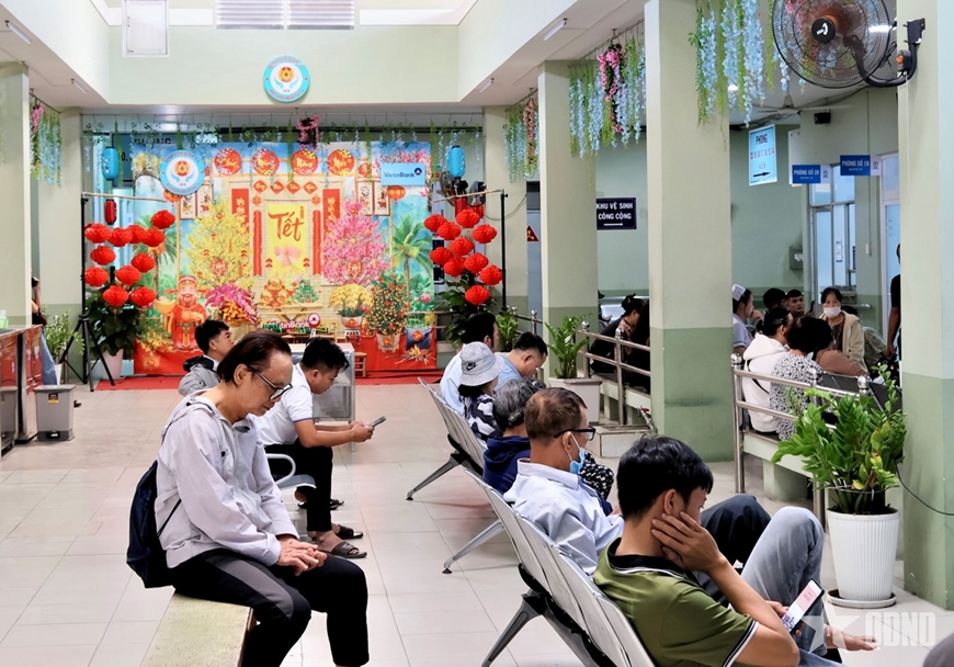 Từ cổng chính, hàng cổ thụ, bồn hoa, cây cảnh đều được cắt tỉa gọn gàng; những khóm hoa giấy, dâm bụt, mười giờ khoe sắc; những cành mai được chăm chút tỉ mỉ như mang mùa Xuân đến gần hơn với từng phòng bệnh. Khuôn viên bệnh viện được chỉnh trang sạch đẹp, cờ hoa rực rỡ, tạo nên không khí vui tươi, phấn khởi, như một “liều thuốc” giúp người bệnh giảm lo lắng, bớt áp lực trong quá trình đến khám và điều trị.