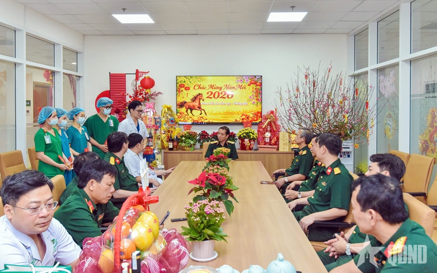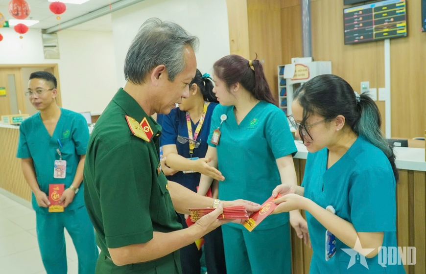 | Ban giám đốc Bệnh viện Quân y 175 thăm, chúc Tết các cán bộ, nhân viên làm việc trong những ngày Tết. |