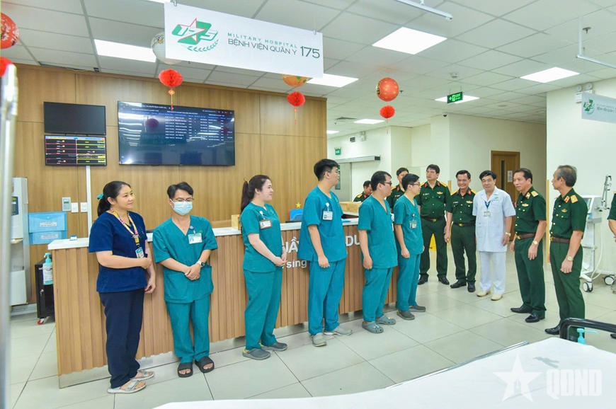 Không gian Tết Nguyên đán tại Bệnh viện Quân y 175 hòa quyện nhịp làm việc khẩn trương, nghiêm túc với sắc xuân rạng rỡ, tiếp thêm năng lượng, niềm tin và quyết tâm để đội ngũ thầy thuốc hoàn thành tốt mọi nhiệm vụ được giao, nhất là nhiệm vụ trực cấp cứu, điều trị. Các hội thi, hoạt động chào xuân mới và sự động viên chúc Tết của lãnh đạo Bệnh viện góp phần tạo không khí xuân rộn ràng, ấm áp, khơi dậy tinh thần thi đua, đoàn kết, quyết tâm hoàn thành tốt nhiệm vụ chăm sóc, bảo vệ sức khỏe bộ đội và nhân dân trong năm mới.