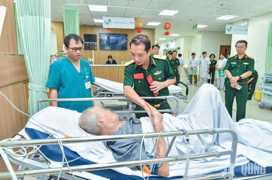 | Thiếu tướng, TS Trần Quốc Việt, Giám đốc Bệnh viện Quân y 175 thăm, chúc Tết các bệnh nhân điều trị trong Tết tại Bệnh viện. |