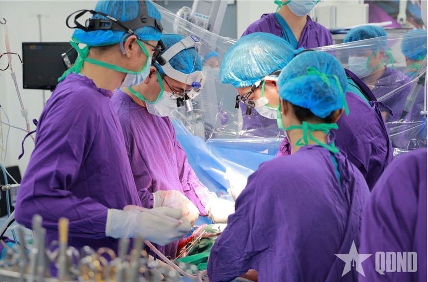 Kíp phẫu thuật của Bệnh viện Quân y 103 tiến hành ghép tim cho bệnh nhân.