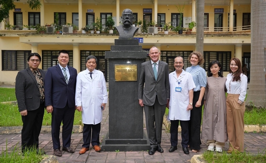 | Đoàn công tác của Liên minh Nghị sĩ Toàn cầu về Phòng, chống Lao thăm và làm việc tại Bệnh viện Phổi Trung ương năm 2025. Ảnh: vov.vn |