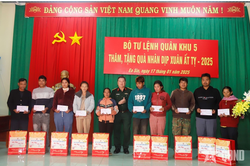 Được biết, năm nay Thường vụ Đảng ủy, Bộ tư lệnh Quân khu 5 đã phân công các đoàn công tác đến thăm, kiểm tra, chúc Tết các cơ quan, đơn vị đứng chân trên 11 tỉnh, thành phố thuộc địa bàn Quân khu. Đồng thời, trích hơn 1.200 suất quà (mỗi suất trị giá 1,3 triệu đồng) tặng đồng bào, gia đình chính sách, quân nhân xuất ngũ có hoàn cảnh khó khăn... Hoạt động không chỉ gắn kết tình cảm quân dân bền chặt, mà còn góp phần chung tay giúp người dân có hoàn cảnh khó khăn đón Tết đủ đầy, vui tươi, hạnh phúc, lan tỏa phẩm chất tốt đẹp của Bộ đội Cụ Hồ trong thời kỳ mới.