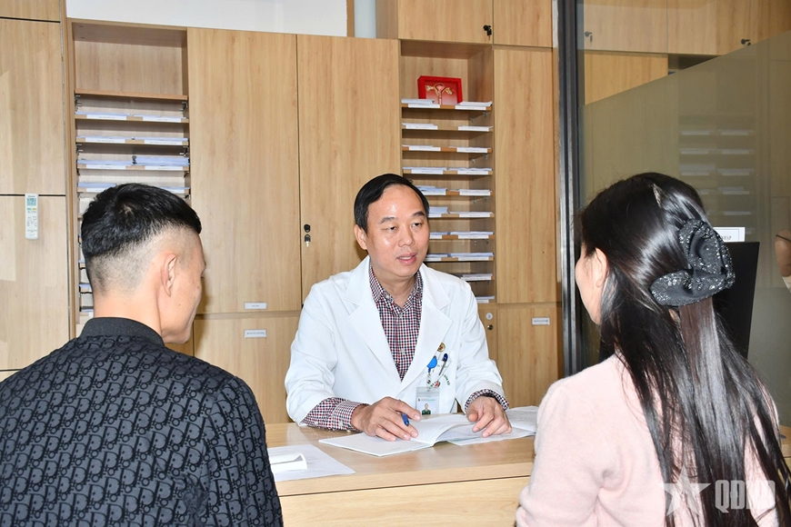 Đại tá, PGS, TS Trịnh Thế Sơn, Giám đốc Viện Mô phôi lâm sàng Quân đội (Học viện Quân y) tư vấn cho bệnh nhân.