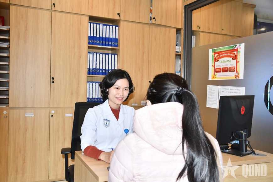 Đại tá, TS Đoàn Thị Hằng, Phó giám đốc Viện Mô phôi lâm sàng Quân đội khám tư vấn cho bệnh nhân.