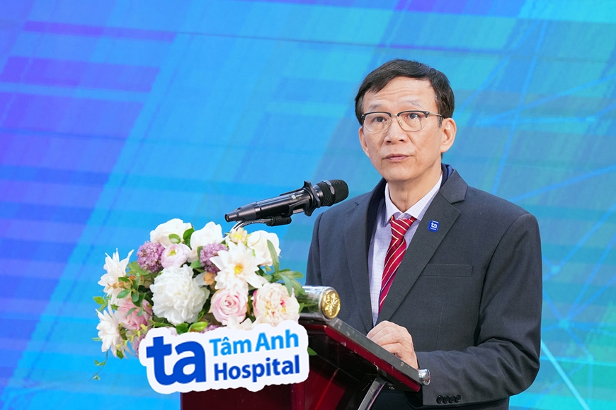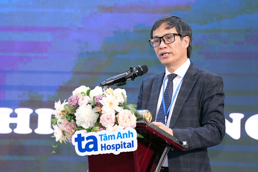 | GS, TS Ngô Quý Châu, Phó tổng giám đốc chuyên môn Hệ thống Bệnh viện Đa khoa Tâm Anh phát biểu tại hội nghị. |