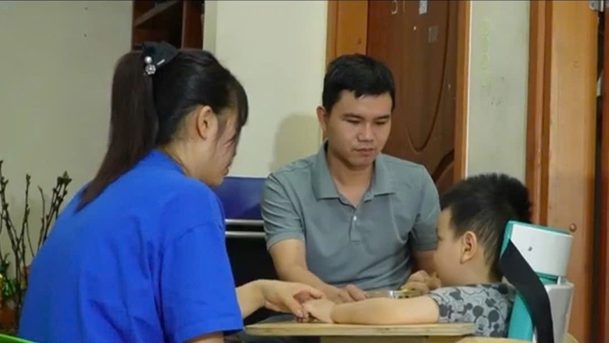 Gia đình chị Huệ (Hà Nội) đang chăm sóc con không may mắc bệnh teo cơ tủy.