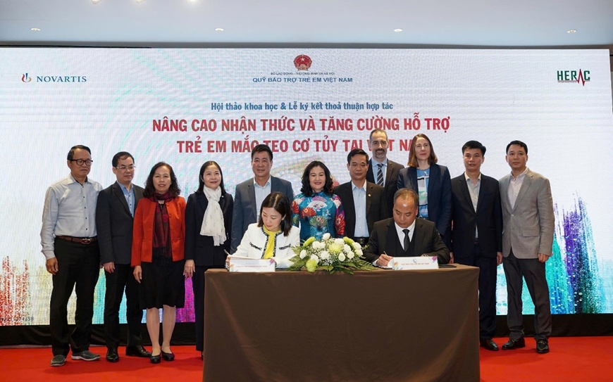 | Đại diện Quỹ BTTEVN và Công ty TNHH Novartis Việt Nam ký thỏa thuận hợp tác. |