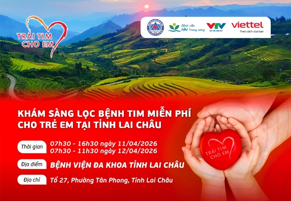 Trong 2 ngày 11 và 12-4-2026, chương trình khám sàng lọc miễn phí bệnh tim bẩm sinh “Trái tim cho em” sẽ mang nhịp đập yêu thương tới với các em nhỏ dưới 18 tuổi tại tỉnh Lai Châu. Chương trình lần này được thực hiện với sự đồng hành của các bác sĩ Trung tâm Tim mạch Bệnh viện Nhi Trung ương, Bệnh viện Đa khoa tỉnh Lai Châu.