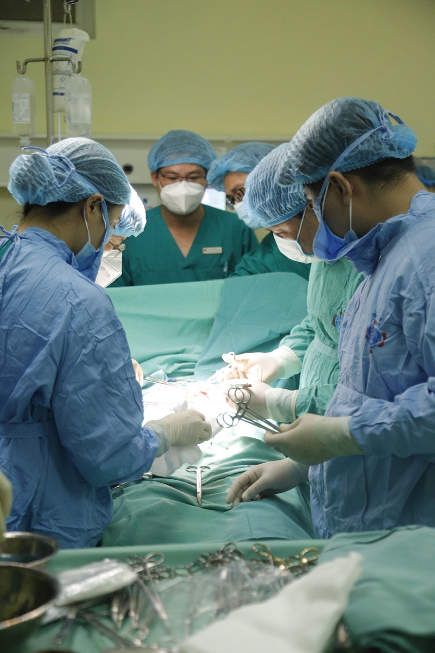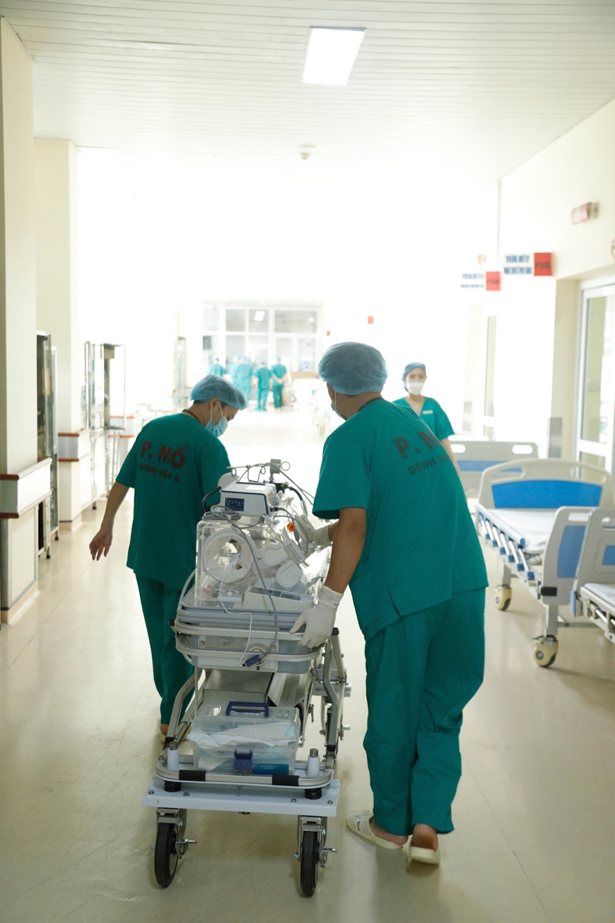 Bác sĩ Bệnh viện K và Bệnh viện Phụ sản Trung ương phối hợp mổ “bắt con” cho sản phụ Nguyễn Thị Việt H. Ảnh: HÀ TRẦN