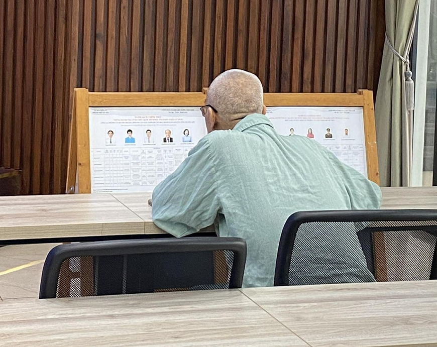 Có mặt tại Hội trường A - nơi tổ chức bầu cử tập trung, người bệnh Lê Phúc Thường (quê Ngọc Lặc, Thanh Hóa) chăm chú đọc tiểu sử và quá trình công tác của các ứng cử viên trước khi bỏ phiếu. Ông cho biết đang trong quá trình điều trị tại khoa Ngoại tổng hợp, Bệnh viện E nên không thể về quê tham gia bầu cử. Vì vậy ông đã đăng ký thực hiện quyền bầu cử ngay tại bệnh viện. Đây là quyền lợi và cũng là trách nhiệm của mỗi công dân. Để gửi gắm niềm tin vào những lá phiếu, kỳ vọng các đại biểu mình lựa chọn sẽ là những cá nhân ưu tú, đại diện cho quyền lợi và tiếng nói của người dân trong thời gian tới.