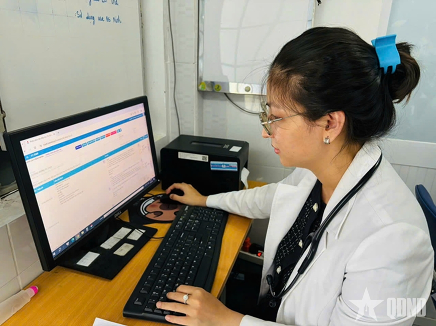 Trong phòng khám, bác sĩ mở hồ sơ bệnh án điện tử, nhanh chóng xem kết quả xét nghiệm cũ và đưa ra chỉ định tiếp theo, quy trình diễn ra gọn gàng, chính xác.