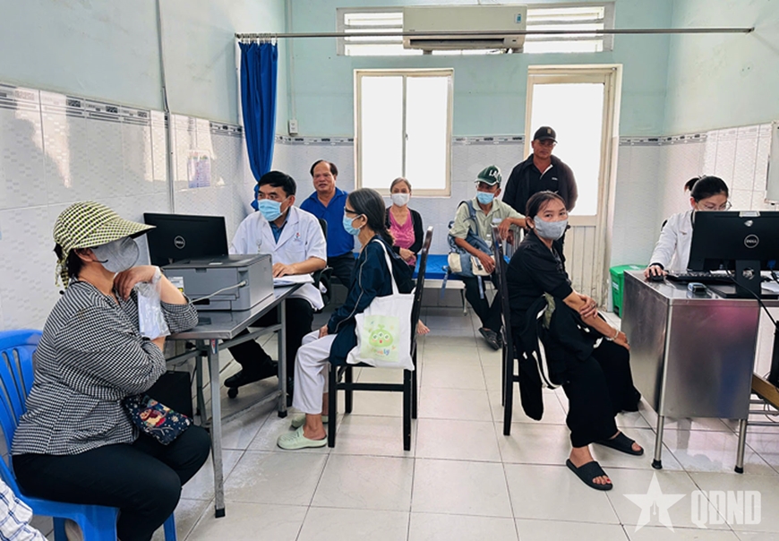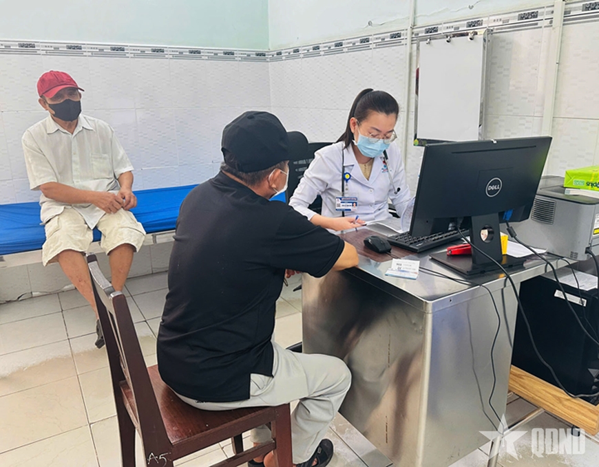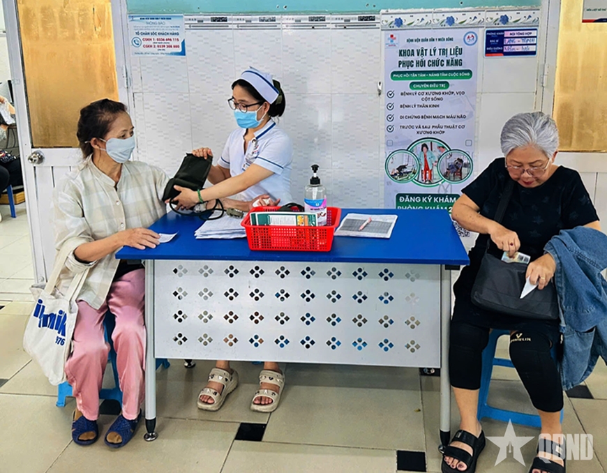 Buổi sáng, khu tiếp nhận của Bệnh viện Quân dân y Miền Đông (Cục Hậu cần - Kỹ thuật Quân khu 7) đã có nhiều người đến khám.