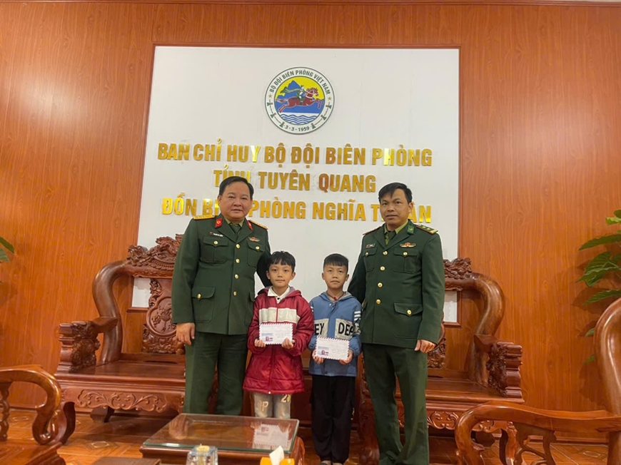 Cũng trong khuôn khổ chương trình, đoàn công tác đến thăm Đồn Biên phòng Nghĩa Thuận, tặng quà cho hai cháu là con nuôi của đơn vị (500.000 đồng/suất).