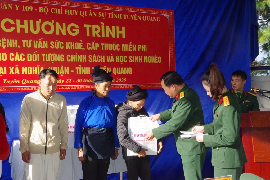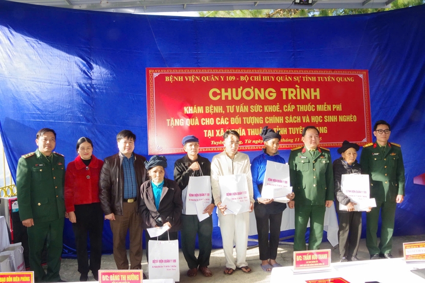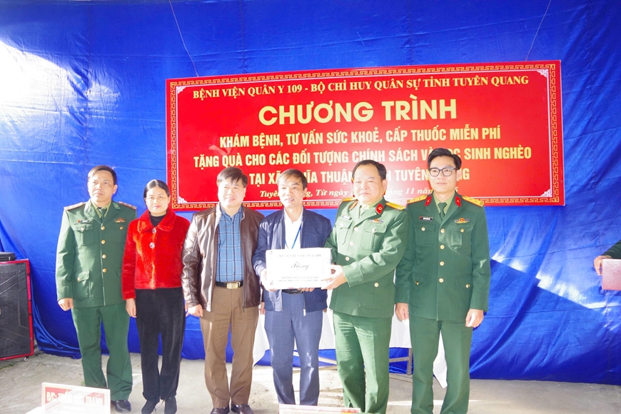Nhân dịp này, Bệnh viện Quân y 109 đã trao 50 suất quà (mỗi suất trị giá 500.000 đồng) tặng đối tượng chính sách tiêu biểu của xã; đồng thời hỗ trợ học sinh và hộ nghèo nhiều phần quà, gồm 2.500 quyển vở, 2.400 bút viết, 800 đôi dép, 100 áo bông, 50 áo gi lê… Tổng trị giá thuốc và quà tặng là hơn 840 triệu đồng.
