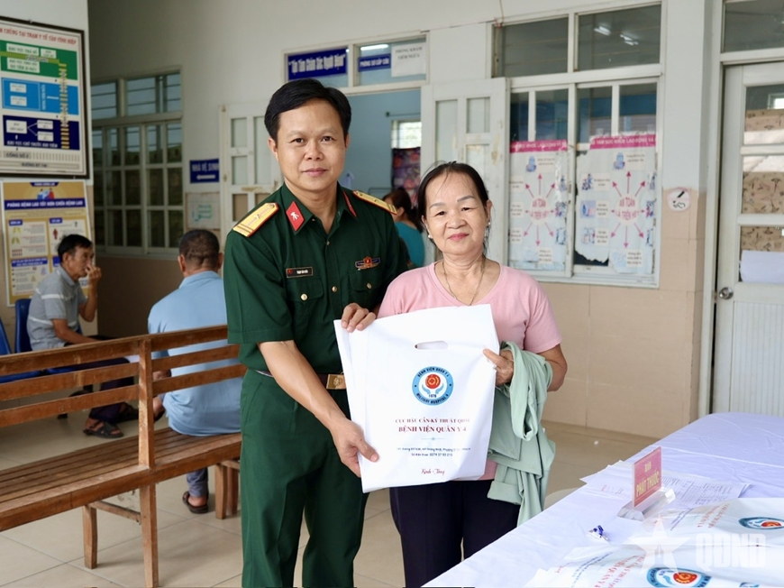 Dịp này, Bệnh viện Quân y 4 đã cấp phát 200 túi thuốc gia đình miễn phí, gồm các nhóm thuốc thiết yếu điều trị tăng huyết áp, xương khớp, tiêu hóa, viêm đường hô hấp và vitamin bổ trợ.