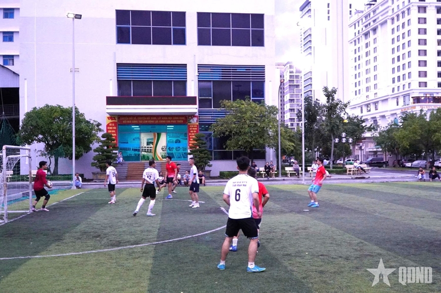 Trận chung kết bóng đá giữa đội tuyển Bệnh viện Quân y 87 và đội Đoàn cơ sở Sở Y tế Khánh Hòa.