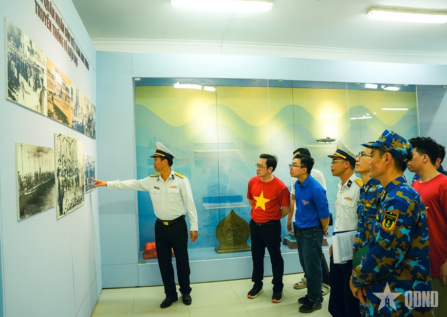 | Đoàn công tác tham quan Nhà truyền thống Trường Sa. |