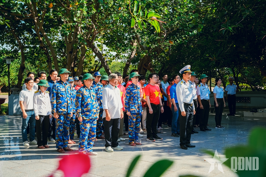 | Đoàn công tác dâng hương tại Đài tưởng niệm các Anh hùng liệt sĩ trên đảo Trường Sa. |